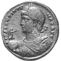 1- 光輪を放つ頭 4-右手にヴィクトリィ神をのせた宝珠を持っている 6-皇帝位を表わす笏を持っている 15-顔が3/4ほど斜め向きに描かれている ※分類上、項目は準備されておりますが、RIC VII の中には登録されたコインは無いようです。 |